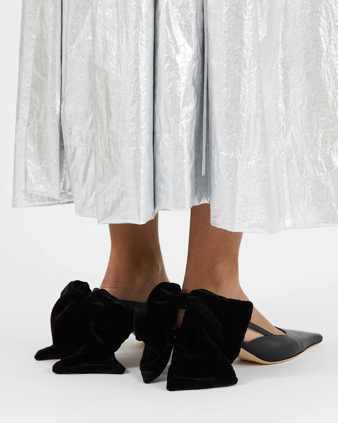 The Rejina Pyo Lou Kitten Heels Leather Black have a pointed toe with thin straps along each side that tie in a larger bow at the heel. Sourced from leather certified by the Leather Working Group.