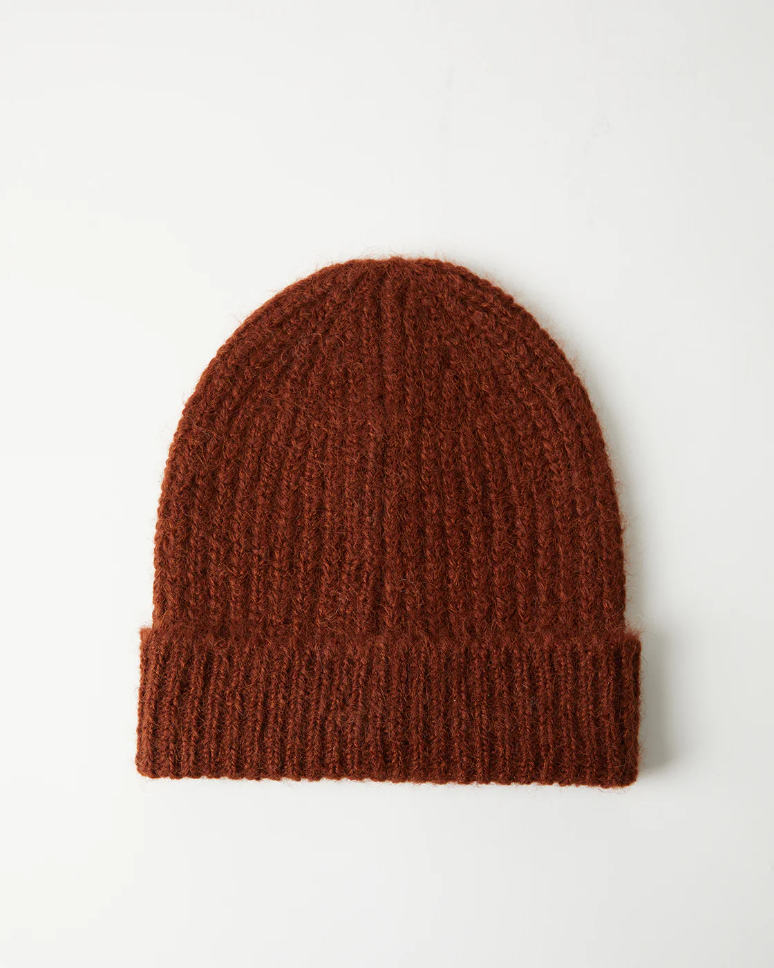 The RP Beanie in responsibly sourced Alpaca Wool Blend in Brown is a soft knit ribbed hat with RP logo detail.